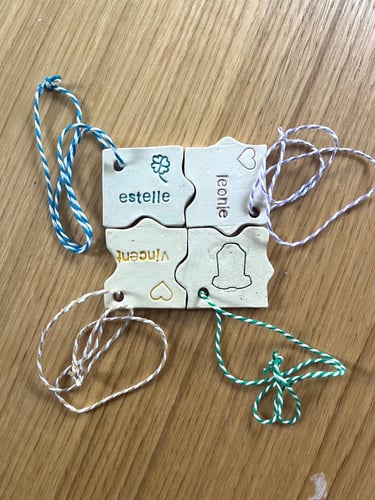 Personnalisation : N'hésitez pas à préciser lors de votre commande une couleur préférée ; votre situation personnelle (enfant et prénom par exemple) ; l'envie d'une pièce en particulier, etc. Nous ferons notre possible pour que les pièces soient adaptées et personnalisées